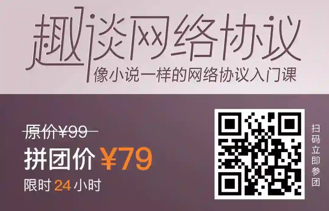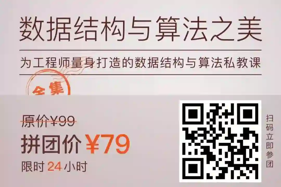 最后,再强调一遍,《数据结构与算法之美》和《趣谈网络协议》两门爆款课程正在限时拼团,原价都是 ¥99,