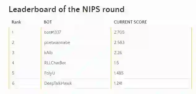从目前公开的排行榜上可以看到,中国选手中,来自香港理工大学和复旦大学的 PolyU 团队在NIPS Round 中取得第五名。