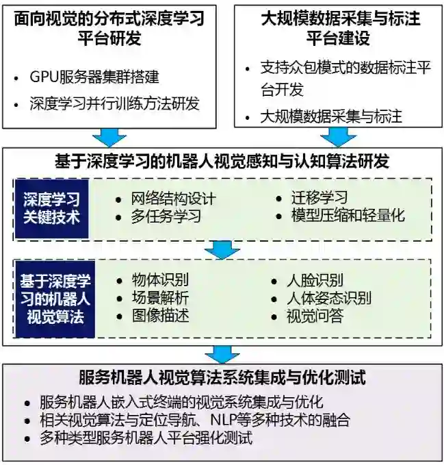 机器人系统技术是对机器人系统软硬件架构和体系的理解。除了伺服舵机、步态运控算法、室内导航定位和机器人操控系统等一系列技术,家庭服务机器人还需要重要的一点,就是通过视觉理解外部环境并且实现与人类交互。