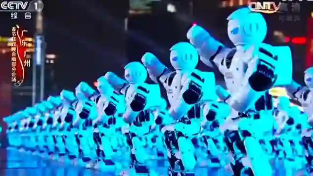 2019年央视春晚深圳分会场,6台人形机器人与数百名人类舞者同台表演,组成了春晚史上最亮眼的人机组合舞团。