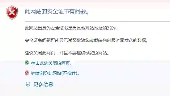 数字签名可以解决可能出现的问题1。对于可能出现的问题2,由于证书B也是CA机构签发,所以数字签名可以通过验证,但是证书中包含了host信息,假如客户端正在访问的host和证书中的host不一样,浏览器会发出警告。就像这样: