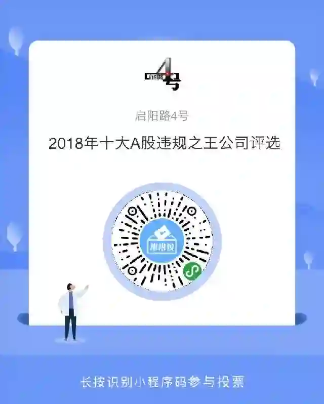 此外,读者可直接通过文末小程序参与投票,此次评选最终将于2018年12月31日晚12时截止,并于2019年1月份评选出“2018年A股上市公司十大违规之王”。