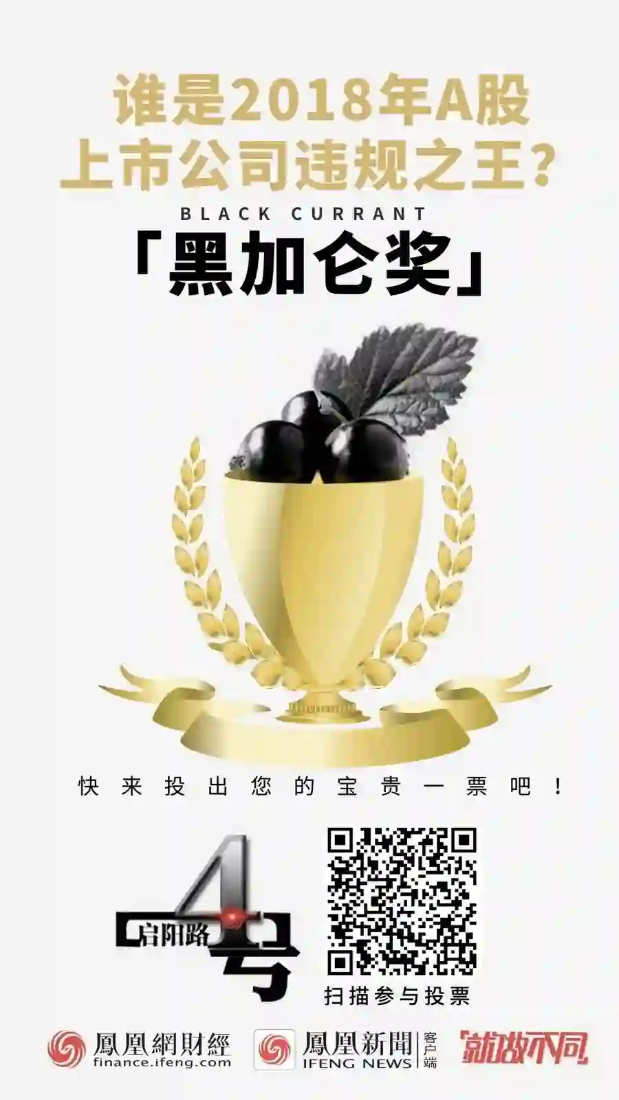 岁末将至,为了净化资本市场,提高投资者维权意识,保护投资者权益,凤凰网财经启阳路4号启动“黑加仑奖|2018年十大违规A股公司评选”。