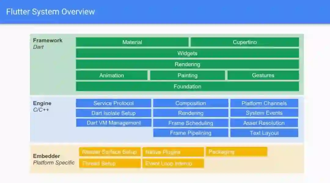 正如其名,Embedder是一个嵌入层,将Flutter嵌入到各个平台上。Embedder负责范围包括原生平台插件、线程管理、事件循环等。