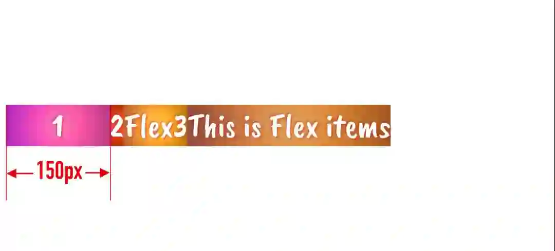 flex-grow和flex-shrink的值都为0,第一个Flex项目的width为150px,相当于flex-basis的值为150px,而另外两个Flex项目在没有设置宽度的情况之下,其宽度由内容的宽度来设置。