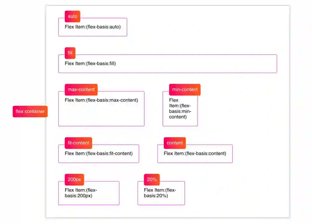 如果flex-basis的值设置为关键词content,会导致Flex项目根据其内容大小来设置Flex项目,叧怕是Flex项目显式的设置了width的值。到目前为止,content还未得到浏览器很好的支持。