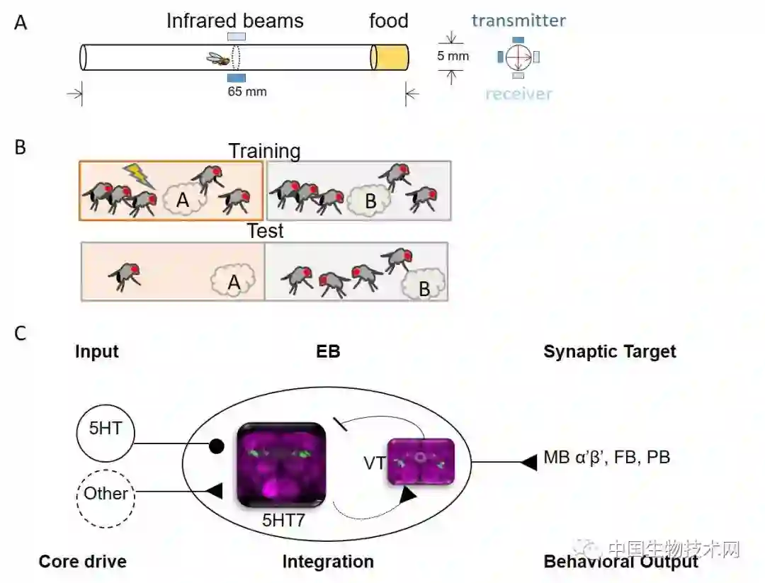 近日,中国科学院深圳先进技术研究院脑认知与脑疾病研究所脑图谱中心在解析睡眠片段化的神经调控机制方面获得进展。相关研究成果“A serotonin-modulated circuit controls sleep architecture to regulate cognitive function independent of total sleep in Drosophila”发表在Cell子刊《当代生物学》(Current Biology)杂志上。该研究与美国布兰迪斯大学教授Leslie C. Griffith(共同通讯作者)团队合作完成,文章第一作者和共同通讯作者是研究员刘畅,同等贡献第二作者为脑认知与脑疾病研究所诺奖实验室正高级工程师孟志强和布兰迪斯大学博士Timothy D. Wiggin。 睡眠问题已成为全球性的课题和全社会关注的重大问题。目前,人们对于睡眠的研究,主要关注调控睡眠总量的神经环路,而对独立于调控睡眠总量的编码睡眠质量(即睡眠结构)的神经网络的认知依然知之甚少。利用模式动物果蝇的丰富的遗传资源背景、理想的脑结构和脑功能的复杂度、分子作用机制的高度保守性以及较短的生命周期等优势,结合神经生物学研究的前沿技术,上述论文既发现了调控睡眠片段化的神经环路:信号输入五羟色胺神经元à神经编码整合中心椭球体(作用于 5-HT7受体)à信号输出脑区(蘑菇体,扇形体,原脑桥);又发现了睡眠片段化(反复觉醒,睡眠质量差)可导致学习受损,而受损的学习可通过改善睡眠质量而恢复到正常水平。研究人员还发现,敲除5-HT7受体或者阻断该受体的功能,均可以改善睡眠质量。 上述结果架起了五羟色胺与人类睡眠之间的链接桥梁,而5-HT7受体功能与哺乳动物具有高度的保守性,为改善、治疗睡眠和认知障碍提供了新的参考靶点。