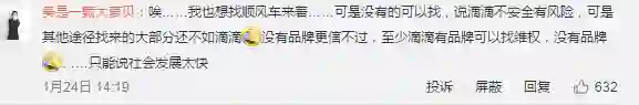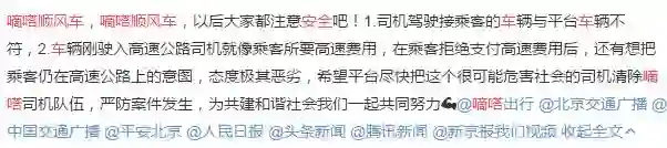 微博上一篇有关滴滴顺风车不上线的微博,都有上千的评论。