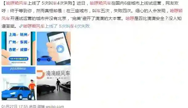 哈啰顺风车的问题是,有平台没车。最近有记者三个城市体验哈啰顺风车,5次叫车4次失败。