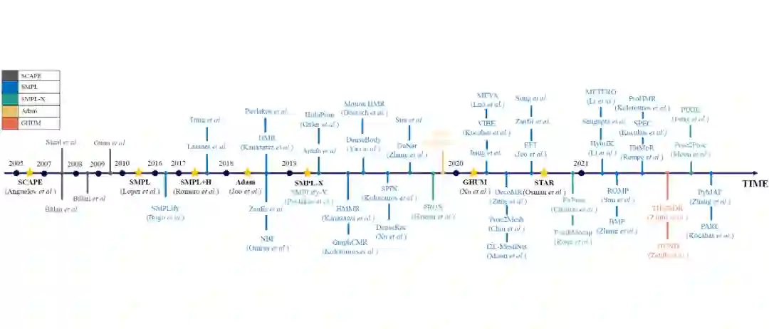 近年来,社区已经将他们的兴趣转向了人体的3D网格恢复,以及富有表情的脸和生动细致的手。这一趋势与统计人体模型的成功密不可分。