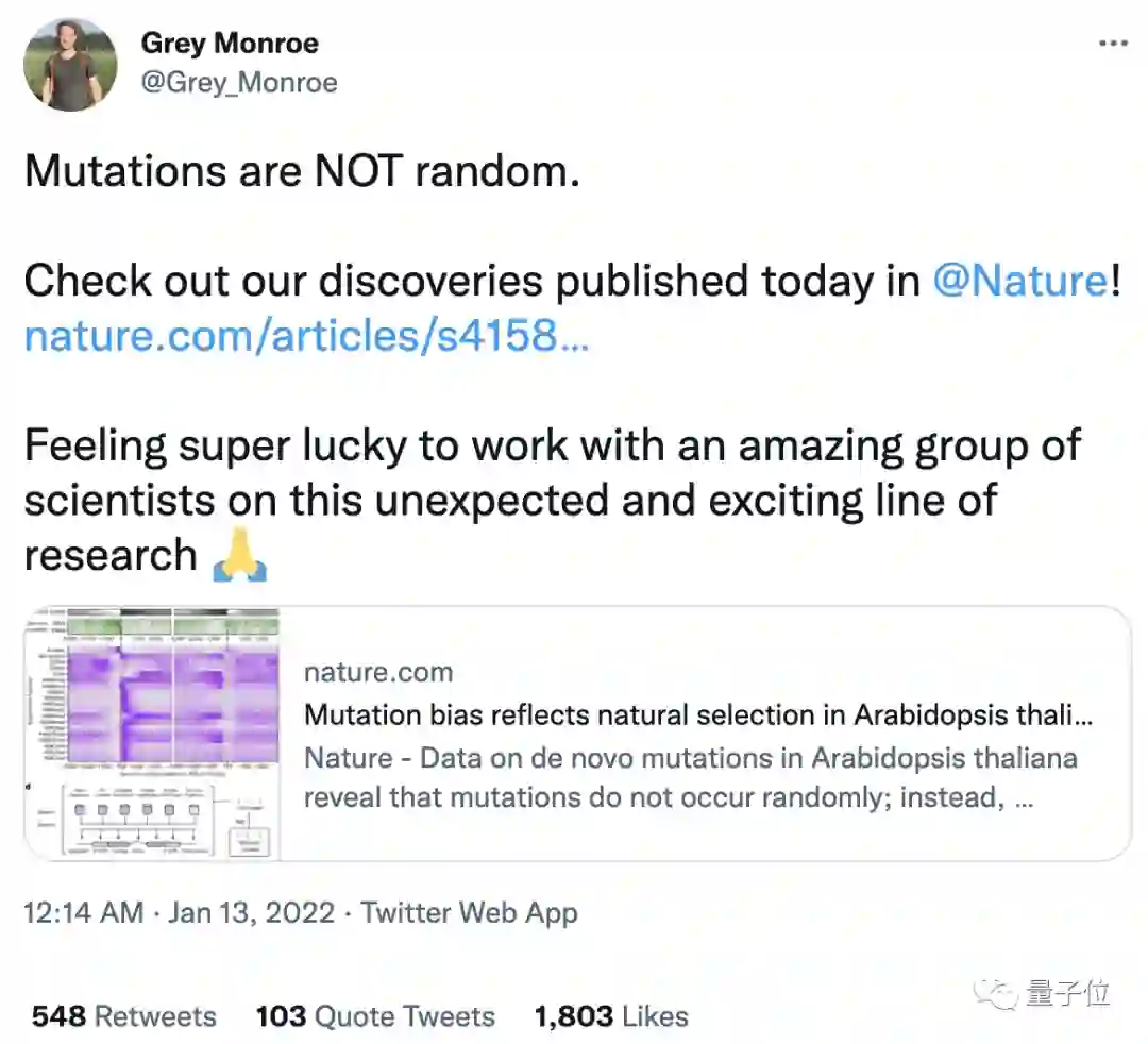 不过Grey Monroe也在最后表示,从历史上来看,“突变是随机的”显然是一个过于简单的断言,或者“糟糕的假设”,而他很高兴这篇论文引发了对这一理论的广泛讨论。