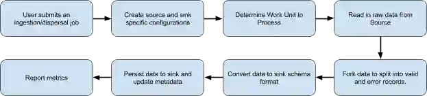 无论源数据存储是什么,单一摄取管道都将执行相同的有向非循环图作业(DAG)。在运行时,摄取行为将根据特定源(类似于策略设计模式)而有所变化,以协调摄取过程,并使用一种通用的灵活配置来适应未来不同的需求和用例。