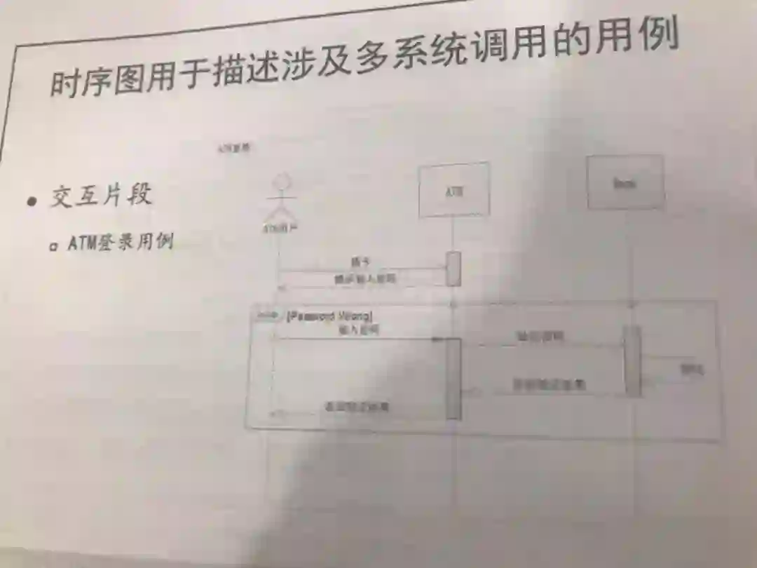 分析序列图,这时,对应的实例是"储户界面",而不是"ATM"