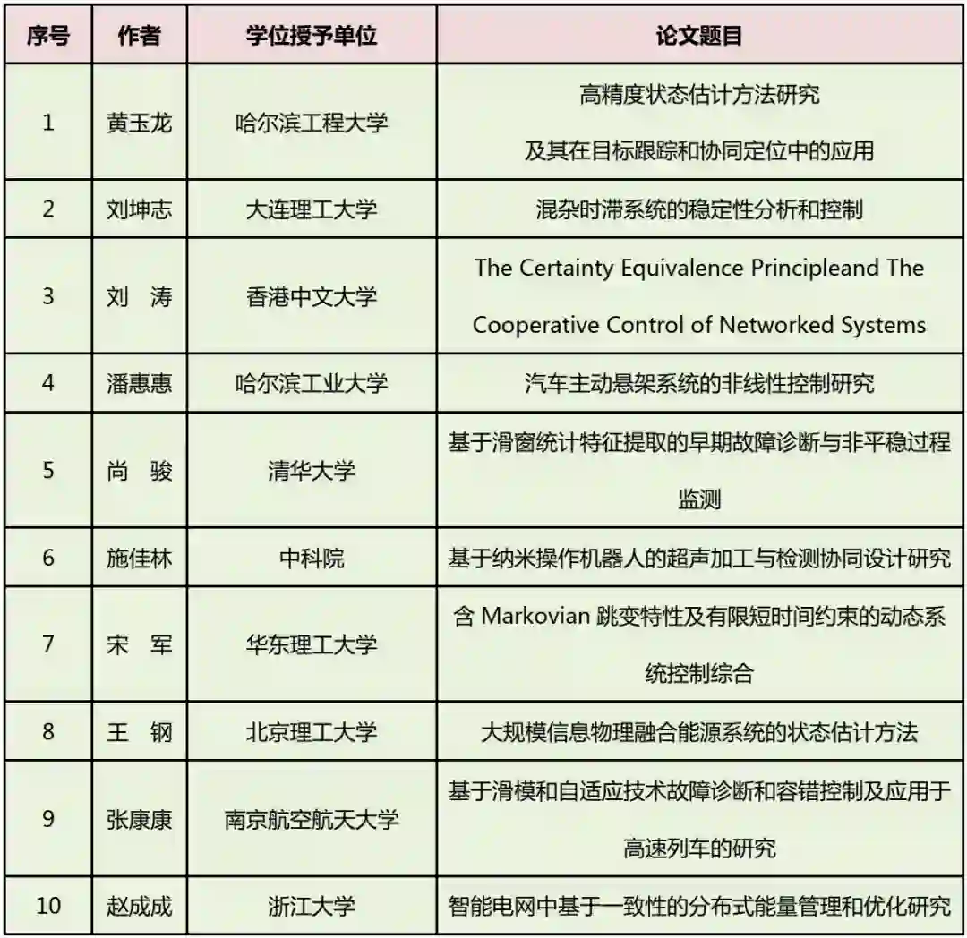 【导读】中国自动化学会于2019年11月15日在江苏省常熟市召开了2019年度CAA优秀博士学位论文奖终评会议,经专家评审委员会评审,现将评审结果公示如下。