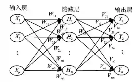 ⑥神经网络技术:指模仿生物神经系统的过程,其识别成功率依赖训练神经网络模型的最佳加权矩阵和训练数据等,误差反传(BP)神经网络模型如图3。神经网络算法可应用于线性和非线性环境,通常由输入层、隐藏层和输出层3部分组成,每层均包含若干个神经元,数据向量从网络左边输入,神经网络完成非线性变换,在网络右侧输出。该变换能产生从数据到聚类分析技术形成的身份类别的变换,神经网络可将多传感器数据变成一个实体联合身份说明。用目标真实数据预先训练神经网络,再应用于实际系统,对接收的各种信号进行处理,可得到较准确的识别结果。