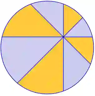 但是,如果选取的圆心是错误的,那么即使「均匀地」切开披萨(每切一刀转过的角度都是相同的),每块披萨的大小也都不一样。这时候如果两个人按照顺时针(或逆时针)顺序轮流拿披萨吃,那么两个人吃掉的披萨是否还一样多呢?