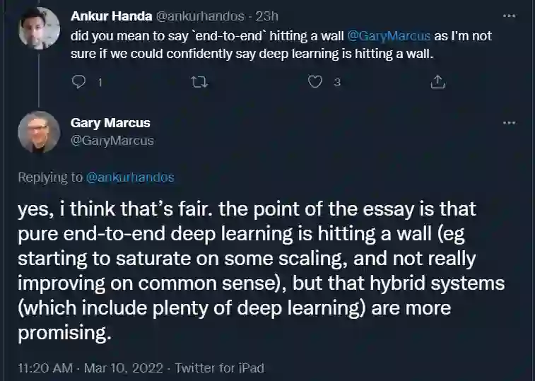 当然,熟悉 Gary Marcus 的读者都知道,这已经不是他第一次提出类似观点了。但令 Marcus 失望的是,他的提议一直没有受到社区重视,尤其是以 Hinton 为代表的顶级 AI 研究者。Hinton 甚至说过,在符号处理方法上的任何投资都是一个巨大的错误。在 Marcus 看来,Hinton 的这种对抗伤害了整个领域。