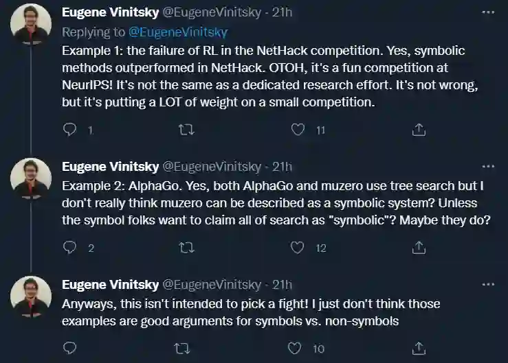 MetaAI 的一位研究者认为,Marcus 举的 NetHack 的例子不太恰当,因为这只是 NeurIPS 大会上一个比较有趣的竞赛,放在这里当论据有些薄弱。