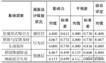 表3 影响学习投入的移动学习资源画面设计因素层次及评定