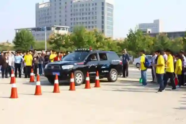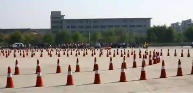 当时的曲线行驶测试是在锥桶围成的模拟弯道上进行的,车道比车身略宽,行驶中压到锥桶就要扣分,很像司机考驾照的场地。第一个上场的是一辆西安交通大学智能车,慢慢地延着弯道向前行驶,车上没有人,方向盘却在自由的打着方向,顺利地通过弯道,没有碰到一个锥桶,它的成绩很大一部分要看完成动作的用时。