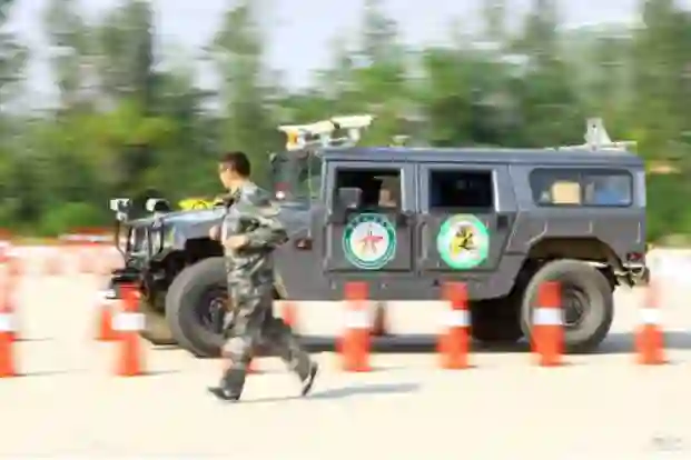 紧接着出场的是一辆军事交通学院智能车,个头很大却很灵活,得到指令后迅速撺了出去并以接近30公里的时速很快完成了弯道,参赛选手要一路小跑追着它,以防出现事故采取紧急制动,身材魁梧的东风猛士在这个项目中完成的很出色,用时也较短,冲过终点时引来观众的阵阵喝彩。