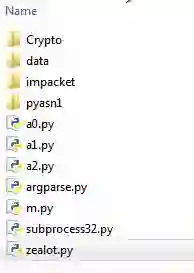 随着漏洞利用在windows设备上的进行,它会下载 “zealot.zip” 和“raven64.exe”文件。 “zealot.zip” 包含有几个python脚本和函数库,攻击者的脚本全部都用 “pyminifier”工具混淆了。
