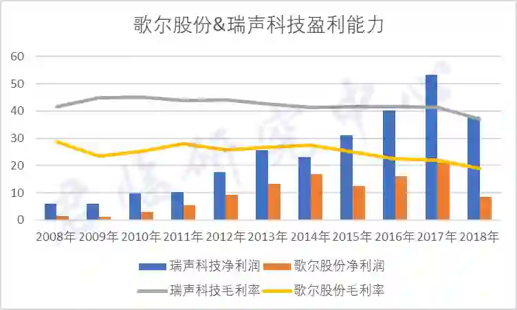 还有一个严重问题在于,歌尔股份的产品总体以中低端为主,而且有太多低毛利的代工业务,所以他的毛利率和净利润要比瑞声科技低很多。