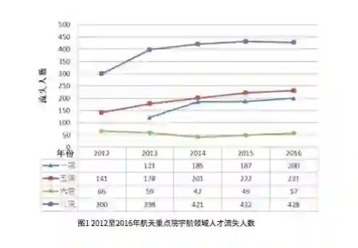 调查结果显示,2012年至2016年,航天一院、五院、六院、八院等航天科技集团主要院所,每年流出总人数呈上升趋势。例如,2016年八院流出人数达428人,远超2012年的300人。