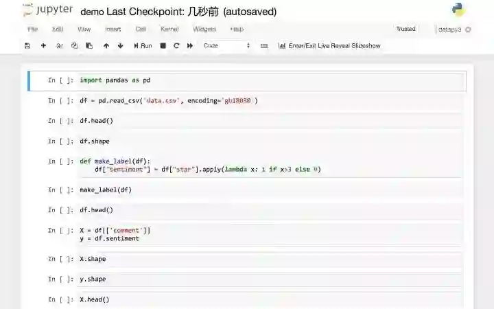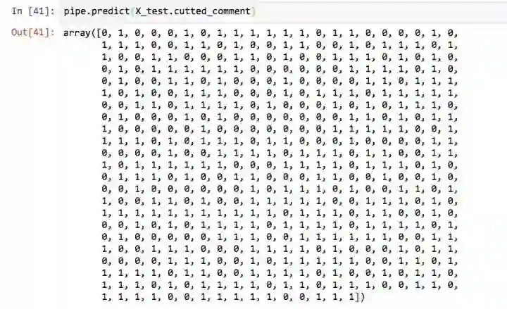 好了,评论数据训练集已经特征向量化了。下面我们要利用生成的特征矩阵来训练模型了。