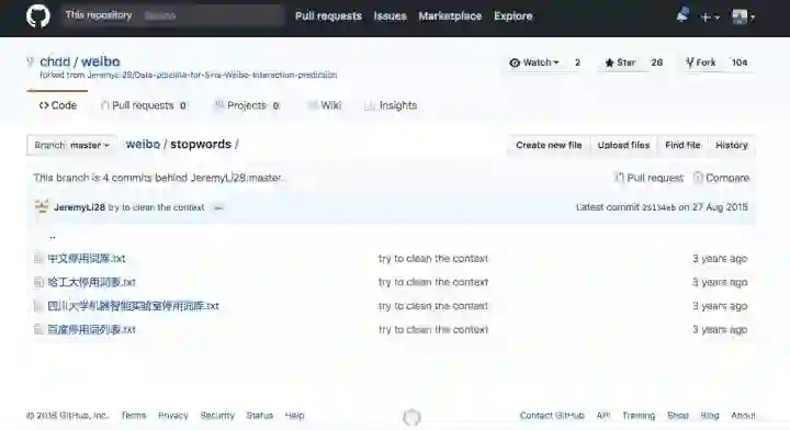 例如在原先的教程里,更新中文停用词处理部分,打个补丁。