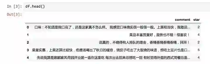 我从中抽取了评论文本和评星(1-5星),用于本文的演示。