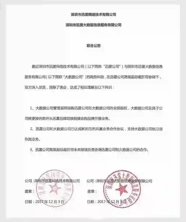 6、迅雷确认与大数据公司和解:后者将独立运作