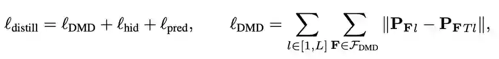 因此,蒸馏损失可以表示为对隐藏层、预测结果和上述激活相似性矩阵的损失之和:
