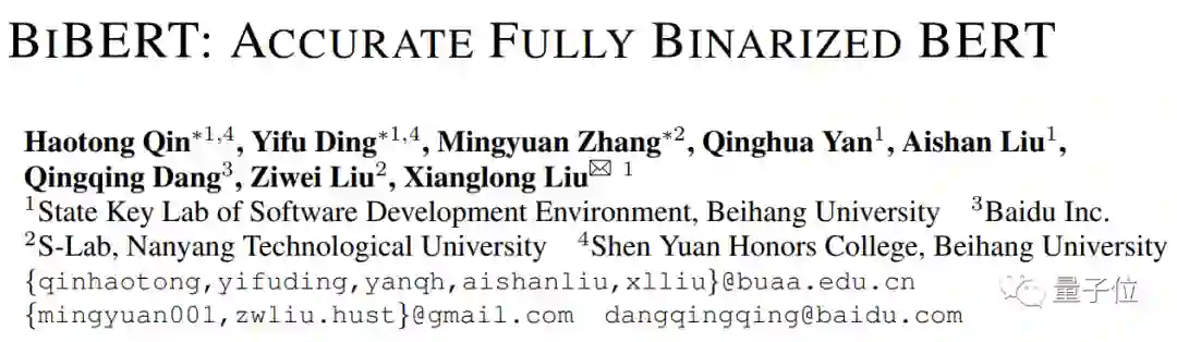 在本文中,来自北航、NTU、百度的研究人员提出了BiBERT,将权重、激活和嵌入均量化到1比特(而不仅仅是将权重量化到1比特,而激活维持在4比特或更高)。