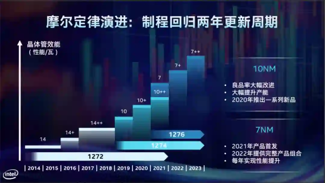 2018年底,英特尔提出了6大技术支柱,分别是制程封装、XPU架构、内存的存储、互联、安全和软件。之后的技术创新都是以这六大支柱为基础,这其中就包括他们将在明年要发布的7nm芯片。