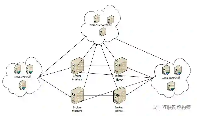 以rcoketMQ为例,他的集群就有多master 模式、多master多slave异步复制模式、多 master多slave同步双写模式。多master多slave模式部署架构图(网上找的,偷个懒,懒得画):