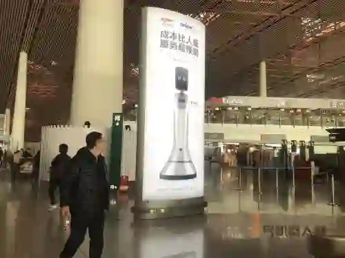 近日,猎豹移动机器人巨幅广告登陆首都机场T3、上海浦东机场,不管是国内国际的出发、到达,还是行李提取处,人们都可以在上百块屏幕上看到猎豹机器人的“身影”。