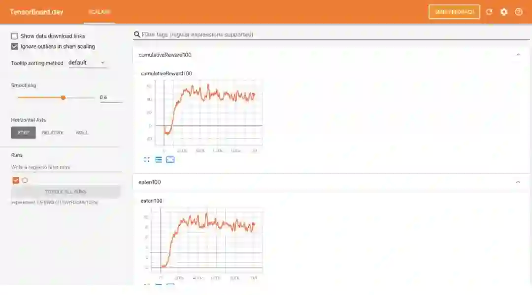 TensorFlow.js强化学习示例包括指向相应TensorBoard的链接: