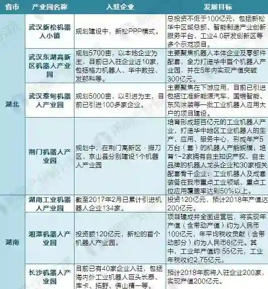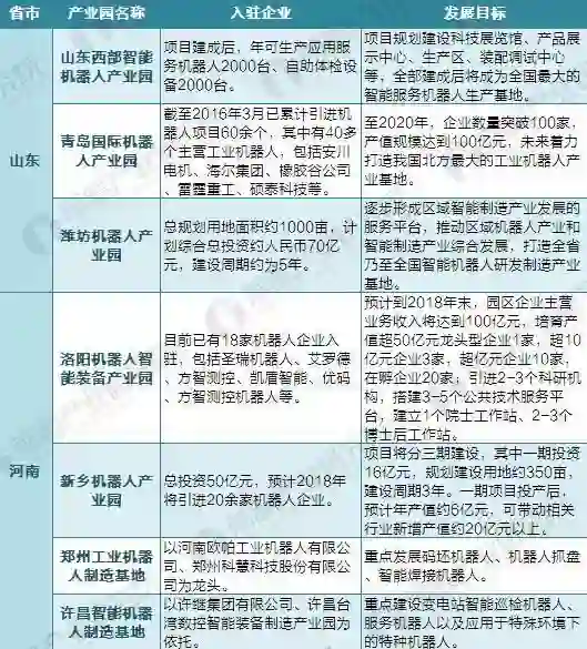 各地政府也对机器人产业园提出了预期年产值、招商引资数量等雄心勃勃的目标,以壮声势。哈尔滨和青岛都将建设目标定为北方最大的产业机器人基地,抚顺则提出了2030年建成国内最大机器人产业基地的远景。不少产业园更是雄心勃勃地提出年产值数百亿人民币的目标,比如湖南长沙市《工业机器人产业发展三年行动计划(2015-2017)》便提出“助推长沙市雨花区打造百亿机器人产业园”。
