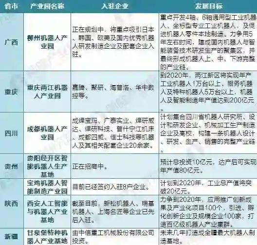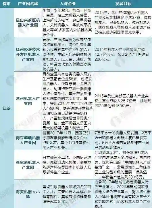 根据前瞻产业研究院发布的《2018-2023年中国产业园区规划布局与运营管理分析报告》统计,截至2018年2月全国共有65个机器人产业园在建或已建成,许多省份更是有多个产业园落地,如江苏省就有昆山、张家港、南京、常州及徐州5座城市“配备”机器人产业园,以及海安机器人小镇。