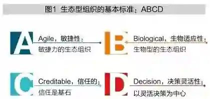图1展示了生态型组织的四个共同标准,笔者将其称之为ABCD标准,即敏捷性、生物适应性、信任与决策灵活性。