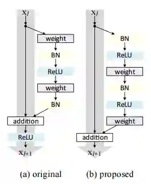 现在与GoogleNet类似,这些剩余模块相互堆叠,形成一个完整的端到端网络。
