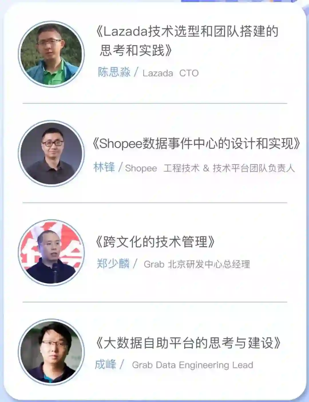 近几年,国内手机厂商大举进军东南亚市场,在一定程度上促进了东南亚的移动应用发展,电商、移动支付、打车等业务火热崛起。在如此快节奏的业务推动下,技术实力显得尤为重要,所以我们邀请到了来自 Lazada、Shopee 和 Grab 的技术专家,来 ArchSummit 全球架构师峰会上分享各自的技术特点。