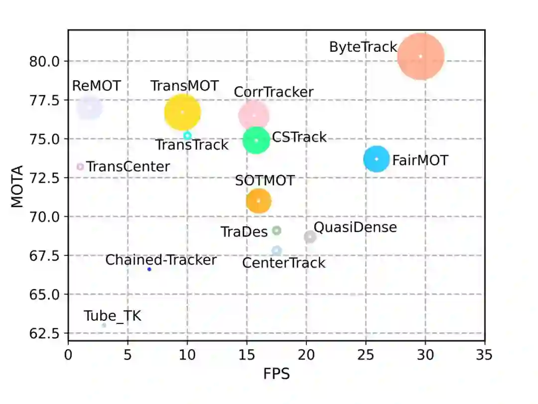 多目标追踪场景中,大部分遮挡物体的检测结果都是低分框,ByteTrack 非常简洁的从低分检测框中寻找遮挡的物体,对遮挡非常鲁棒。ByteTrack 同时也为如何最大程度利用检测结果来帮助 MOT 提供了启发。我们也提供了 ByteTrack 的部署代码和模型,希望它的高精度、高速度能够对实际应用带来帮助。