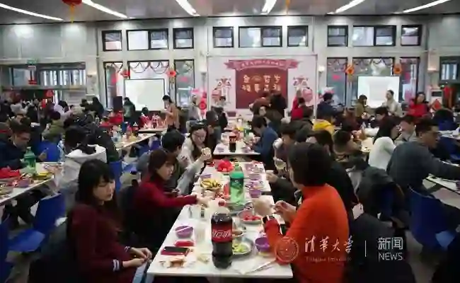 在餐厅里,食堂师傅们精心准备了丰盛可口的年夜饭。前来参加晚会的同学们纷纷在入口处领取纪念品,并在主持人引导下参加游戏和抽奖活动。在人手一张的清华主题明信片上,同学们写下对亲朋好友的新春祝福,在新春第一天寄往世界各地。
