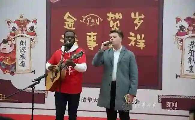 精彩的联欢节目逐一登场。开场歌曲《Treasure》和《月亮代表我的心》,来自马拉维的国际学生、新闻学院2018级安萨卡和来自美国的国际学生、人文学院2015级本科生柯伊桑用美妙的歌声传递新春的祝福。学生艺术团舞蹈队队员、法学院2018级本科生陈希希献舞《中国结》,也将吉祥如意、团圆美满的美好寓意献给各位观众。饮食中心的师傅张林用一首脍炙人口的歌曲《欢聚一堂》表达了现场所有人辞旧迎新的喜悦。材料学院2017级研究生顾校宇、金融学院2018级研究生王明媚、化学系2018级本科生蓝青、社科学院2018级研究生葛诺一同带来歌曲联唱《南山南》《成都》《清华路之歌》,歌声化作星火温暖除夕夜。