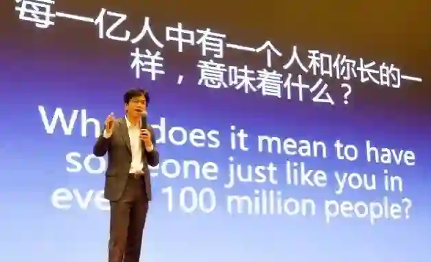 今天机器是有了高性能的,比人类大很多倍的这种识别能力,能够帮助我们回答这些更有趣的问题:在13亿中国人中有多少人跟你长的一模一样?一模一样我们可以先定义为自己的妈妈辨别不出来谁是谁。经过依图的实验,结果是,每1亿人当中有一个人跟你长的一样,所以全中国差不多12个人跟你长的一模一样的。