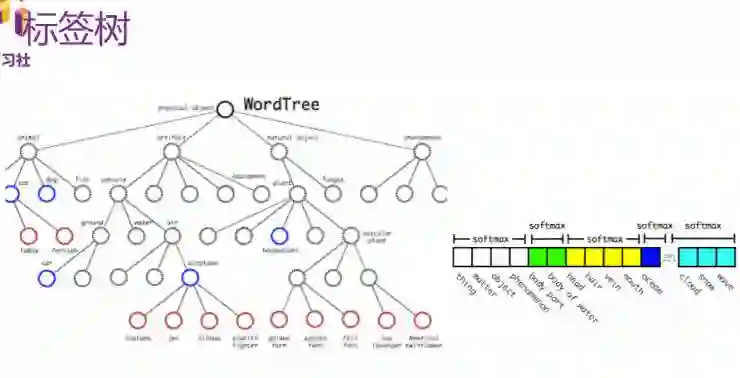 首先建立标签树(WordTree),这个树很大,如图红色的部分是ImageNet里面最流行的九千个类别,检测数据是来自COCO里面的80个类。这个标签树是基于WordNet构建的,总共9418个类,1846个内部节点。可以在每个tree的节点做一个softmax,节点概率是从原点的路径上的条件概率的乘积,最后输出的标签是节点概率高于阈值(0.5)的最深节点。