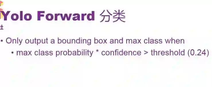 如图,给出了stx、sty、tw、th之后,通过简单的公式,就可以计算出最后输出的边框的位置和大小。具体是否要输出当前的边框,它的概率,还有生成的物体的类别,这个取决于后面的probability和confidence。Confidence表示有没有物体,假设有物体之后,probability表示物体的概率。
