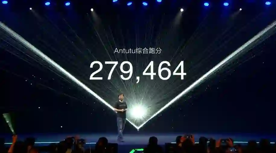 6000平方毫米散热面积,CPU散热效率提升了20倍,核心温度可以降低8度,安兔兔跑分279464分。